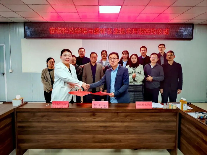 11月9日,安徽科技学院与滁州市盛柳农业科技发展有限公司举行了滁菊产业开发研究签约仪式。安徽科技学院食品工程学院院长杜传来、食品工程学院系主任王宝石、团市委副书记戴莺、市农业农村局副局长曹阳、安徽科技学院食品工程学院副教授赵岩岩及博士生以及市区有关单位等共同出席了签约仪式。