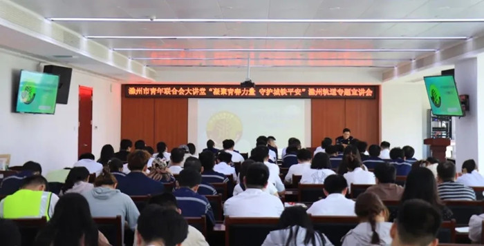 为深入学习贯彻习近平总书记致全国青联十四届全委会、全国学联二十八大的重要贺信和党中央致词精神,8月4日,滁州青联大讲堂走进滁宁城铁,为城铁公司、轨道运营公司及物业公司的近百名团员青年带来一场“凝聚青春力量 守护城铁平安”的专题宣讲会。团市委副书记周以凯,市青联副主席、市消防救援支队二级督导员严为伟,城铁公司党委委员、副总经理、轨道运营公司党总支书记、执行董事闵湘君等领导和专家出席本次活动。
