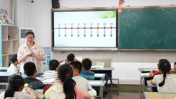 最后,曹老师举起一张被手机遮挡视线的图片,说道:“将时间交付给屏幕,直线便就此断裂;这象征着将梦想托付于努力,托付于成长,它便能引领你飞向更加辽阔的远方。”鼓励孩子们要勇敢追梦,不畏艰难,用实际行动去实现自己的梦想。