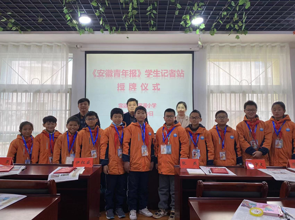 2021年12月9日上午,定远县花园湖小学举行了《安徽青年报》学生记者站授牌仪式,记者站辅导老师及47名小记者和24名三年级年级学生代表出席了仪式。