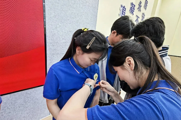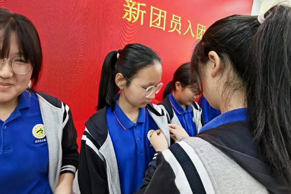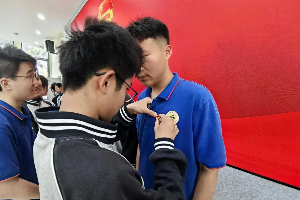 紧接着,入团仪式正式开始。老团员为新团员佩戴团徽,一枚枚闪耀的团徽,不仅代表着荣誉,更象征着责任与使命。