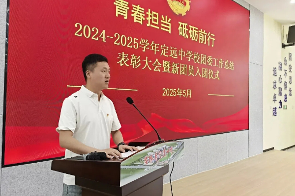 5月21日上午,定远中学校团委举办以“青春担当 砥砺前行”为主题的2024—2025学年工作总结表彰大会暨新团员入团仪式。校领导、团委成员、受表彰师生及新老团员齐聚一堂,共同见证这一庄严而振奋人心的时刻。