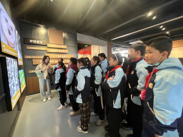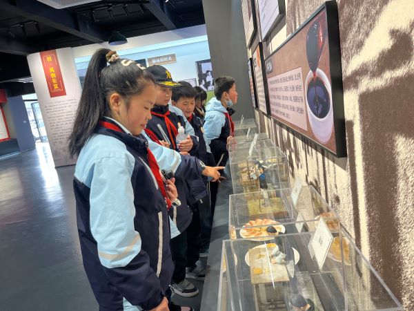 研学首站来到定远县炉桥印象·1958文旅产业园,这座由老粮站改造而成的文化地标让孩子们瞬间沉浸在时光与产业融合的魅力中。青灰色砖墙、复古木质门窗承载着几代人的集体记忆,影视取景地的场景还原、民俗文化的生动展示,让孩子们在漫步中了解家乡产业转型的蝶变历程,感受“修旧如旧”理念下老建筑的新生力量。讲解员结合热播剧《六姊妹》的取景故事,生动讲述了产业园从废弃粮站到文旅网红地的转型故事,让孩子们深切体会到家乡文化产业发展的蓬勃活力。