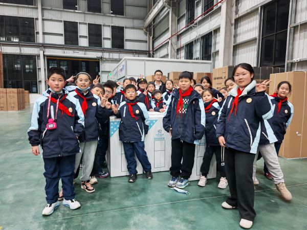 随后,孩子们走进安徽星远制冷科技有限公司,在企业工作人员的带领下,孩子们有序参观了制冷设备生产车间、产品展示区等。从精密零部件的加工组装,到智能生产线的高效运转,再到节能环保制冷产品的原理演示,原本抽象的工业知识通过实物观摩、动态展示变得通俗易懂,让孩子们直观感受科技与生产生活的紧密联系,进一步激发了对工业科技的探索热情。