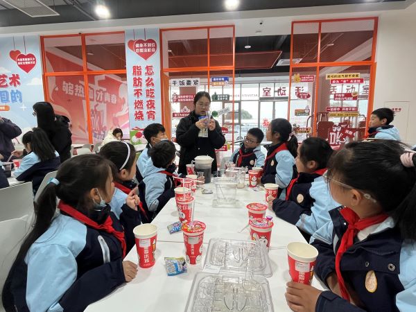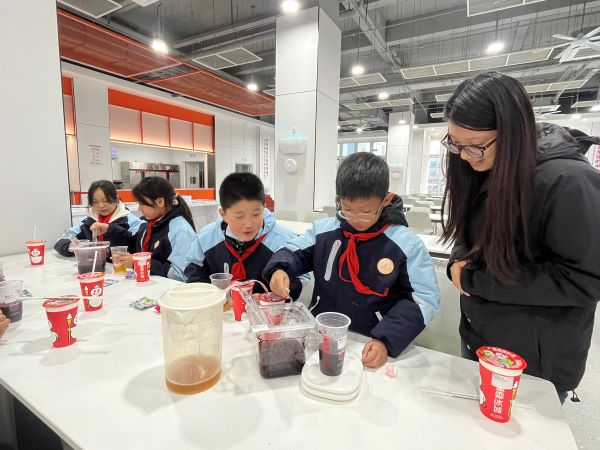 在大咖国际食品(滁州)有限公司,现代化的生产车间成为最直观的科普课堂。作为农业产业化国家重点龙头企业,大咖国际的智能化生产线让孩子们惊叹不已,从饮品原料研发到标准化生产的全流程展示,揭开了日常喜爱的茶饮背后的“智造”密码。最令人期待的奶茶制作互动环节中,孩子们在专业人员的指导下,亲手搭配原料、调试口味,体验从食材到饮品的奇妙转化,在实践中感受食品工业的严谨与趣味,欢声笑语中收获了满满的成就感。