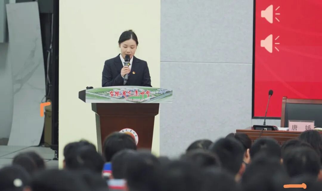 大会第一阶段在庄严的《国歌》《团歌》声中拉开帷幕。激昂的旋律回荡在报告厅内,充分展现了定中学子朝气蓬勃、奋发向上的精神风貌。
