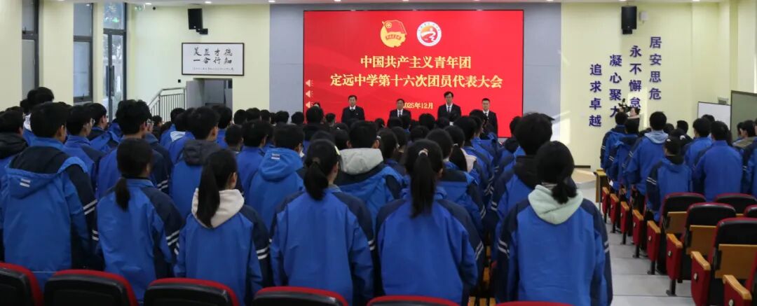 青春逢盛世,奋斗正当时。2025年12月14日,共青团定远中学第十六次团员代表大会在学校科创楼一楼报告厅隆重召开。定远县教育体育局副局长、定远中学校党委书记戴茂俊,校长鲍观泽,纪委书记单顺忠出席会议,校团委及156名团员代表参加大会。本次大会凝聚青春力量,共绘发展蓝图,全体团员代表肩负使命、齐聚一堂,共同见证学校共青团事业发展的重要时刻。大会由副校长颜浩同志主持。