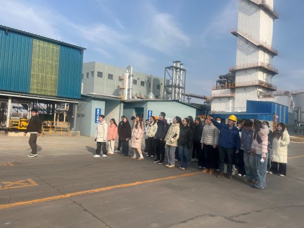 在安徽泉盛化工有限公司,学子们走进生产厂区与中控展厅,听取企业负责人关于发展历程、产业布局、技术创新与人才需求的介绍,了解合成氨、尿素、纯碱、双氧水等主导产品生产流程,以及绿色化工、智能化升级、产业链协同发展成果。作为定远盐化工业园核心链长企业,泉盛化工以技术创新与规模化发展支撑县域工业提质增效,让学子们直观感受“工业强县”战略下的家乡实力,不少同学结合专业方向与企业交流实习就业机会,现场互动热烈。