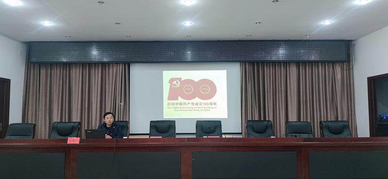 会议首先由凤阳中学团委书记陈正峰老师为大家上了一堂以《没有共产党就没有新中国》为主题的党史课。陈老师以时间为轴,从鸦片战争讲到开国大典,用一个个史实讲述了中国共产党诞生的艰难路程,为与会人员带来了一场生动活泼形象的党史课。