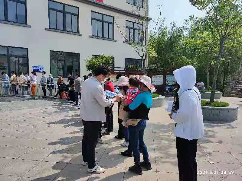 5月21日上午,第五批新冠疫苗到达西泉卫生院,西泉镇群众接种疫苗意愿高涨,当天上午就有500余人在文化广场接种点排队等候。为了让群众耐心等待有序接种,也为了更好地宣传“平安建设”的各项工作,西泉镇团委联合平安办组织志愿者向群众宣传“双提升”、防电信诈骗、禁毒铲毒、铁路护路和反邪教等工作。