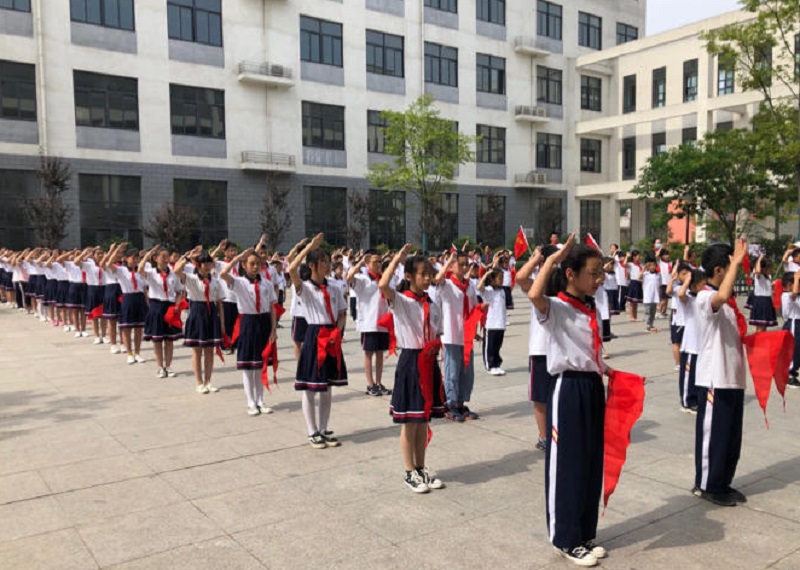 仪式最后,校长对新队员们表示热烈祝贺,勉励队员们要做四有好少年,提出少先队员在家、在社会、在学校的要求,希望队员们做一个胸怀开阔、心理健康、勤奋自立、勇于创新的新时代接班人,在新时代星星的火炬指引下健康茁壮成长。