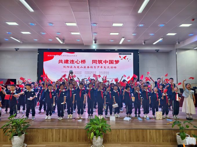 整场活动分别在凤阳县崇文小学与皮山县第二小学举行,双方通过网络跨越四千公里连线交流,两地县委统战部副部长共同致辞,指出两地要以此次活动为契机,不断深化交流合作,共同书写民族团结的新篇章,要求两地各族青少年领会“石榴籽”的时代意蕴、牢记“红领巾”的使命任务、履行“连心桥”的重要责任,践行“强国有我”的诺言,争做民族团结小先锋。