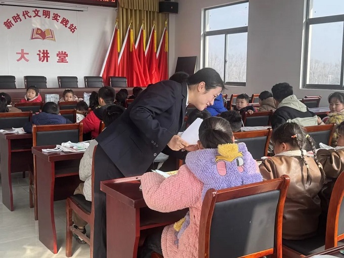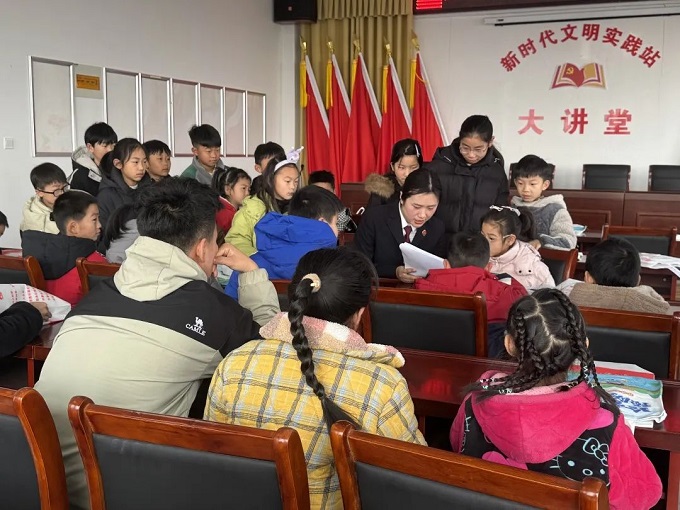 1月22日,团凤阳县委联合县检察院“凤翔未检”工作室走进辖区内刘府镇席岗村,向孩子们送上一堂生动的假期安全法治课。