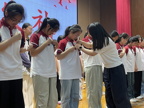 活动在庄严的国歌声中拉开序幕。离队仪式上,少先队员齐唱《我们是共产主义接班人》,面向队旗郑重敬礼,在少先队辅导员的殷切寄语中告别红领巾,迈向青春新征程。随后举行的入团仪式上,新团员们共同学习习近平总书记对青年的深情寄语,在团旗下庄严宣誓,并佩戴上象征光荣与责任的团徽。新老团员代表分别发言,分享成长感悟,表达坚定跟党走、奋进新时代的决心。