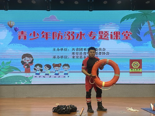 为切实做好暑期青少年防溺水工作,进一步增强青少年安全防范意识,2025年6月12日下午,团来安县委联合县青年志愿者协会走进辖区永阳小学,开展“青春护航·防溺同行”防溺水安全教育主题活动,为200余名师生带来了一场内容丰富、形式生动的安全知识课。
