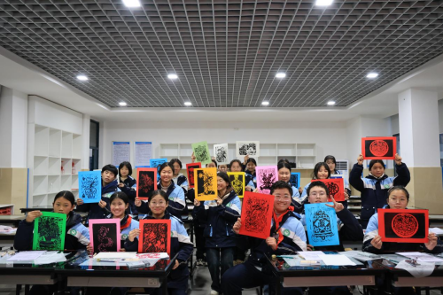 美术教室里,同学们在老师的指导下,用心探索黑白版画的独特魅力,用刻刀在雕板上雕琢梦想,用油墨在纸张上留下青春的印记。同学们用心创作,一条条金蛇“飞舞”在木板上,时而腾空而起、时而盘旋游走,惟妙惟肖,栩栩如生,充分运用艺术造型,表达对平安喜乐、吉祥如意的期冀与追求。