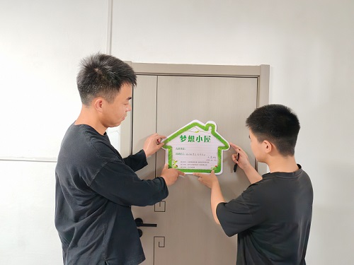仪式现场,焕然一新的小屋令人倍感温馨:透亮的白墙、新安装的阳台与窗户防护设施保障安全,量身定制的书桌、符合人体工学的座椅、环保书柜、崭新的房门以及充满激励的墙贴等一应俱全,每一处细节都凝聚着精准帮扶的用心。项目主办方代表与受助青少年家庭共同挂上醒目的“梦想小屋”标识牌。团区委书记吕世婷深情勉励孩子们:“小屋虽小,足以盛放星辰大海;愿你们在这方天地安心学习、勇敢追梦,社会各界永远是你们最坚实的后盾。”