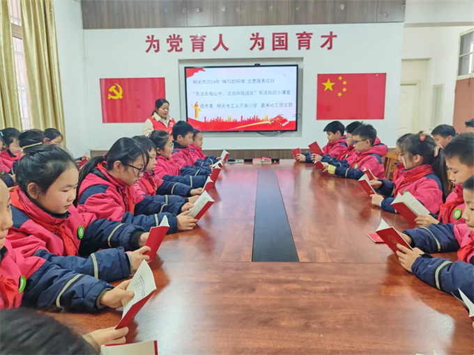 为深入贯彻落实法治教育,增强青少年儿童的宪法意识,12月10日,团明光市委携手嘉禾社工在明光市工人子弟小学精心组织开展了“宪法在我心中,法治伴我成长” 宪法知识小课堂活动,为孩子们带来了一堂生动且意义非凡的法治课。