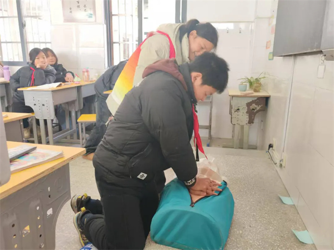 志愿者老师首先以简单的例子向儿童们解释什么是急救,比如小伙伴摔倒受伤了,我们第一时间能做些什么来帮助他,让儿童们对急救有一个初步的概念。心肺复苏(CPR):用儿童化的语言介绍心肺复苏的适用场景(如有人突然晕倒,没有呼吸和心跳了),简化操作步骤, “按压胸口,按压深度要适中,频率快快按,每30次胸外按压,2次人工呼吸,5个周期”,边讲解边利用人体模型进行现场演示,让儿童们更直观地了解操作要点。海姆立克急救法:通过讲述小朋友吃东西被噎住的小故事,引出针对儿童异物阻塞气道时如何运用海姆立克急救法进行急救。“双手环抱肚,用力往上顶,一二三四五,异物吐出来”,通过人体模型进行示范操作,让儿童们轻松掌握正确的手法和力度。并通过运用“剪刀、石头、布”通俗易懂的实践方式向学生讲解了海姆立克急救法的操作要领和注意事项,让儿童们在理论层面上对急救有了宏观的认识和理解。