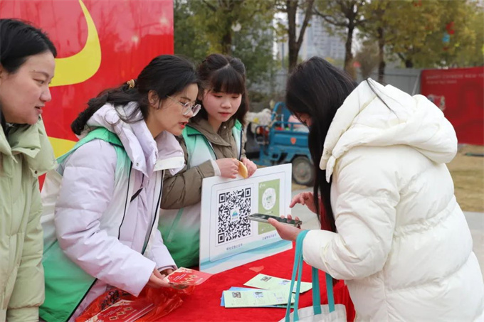 活动当天,大学生志愿者们身着志愿者马甲,早早地站在了活动现场的入口处。随着人群陆续到来,他们迅速投入到工作中:帮助扫码、发放游戏券、引导路线、盖章、发放文创产品。在入口处,大学生志愿者们耐心地引导着每一位前来参与活动的群众,手把手帮他们扫码,顺利拿到开启欢乐之旅的游戏券。并且路途中也有志愿者们为群众引导路线,帮助他们更顺利地找到游戏区。