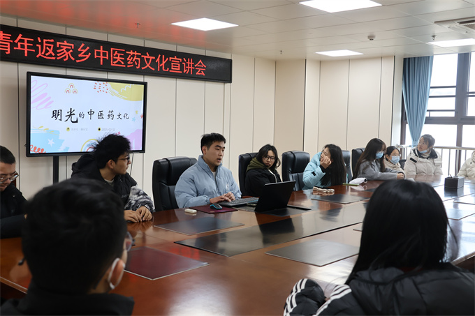 为进一步深学深悟习近平新时代中国特色社会主义思想,推进《中医药振兴发展重大工程实施方案》(国办发〔2023〕3号)、《“十四五”中医药文化弘扬工程实施方案》等政策,让更多家乡人深入了解中医药文化的博大精深,促进本地中医药文化的传承与发展,近日,返乡青年学子胡应宝在明光市中医院开展“薪火”青年宣讲主题团日活动——中医药文化宣讲会。