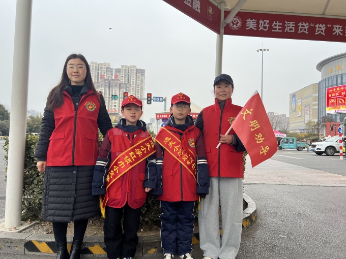 活动纪实:家校携手,共护平安路一、路口执勤:红领巾小交警显担当 在交警指导下,少先队员与家长志愿者分组驻守学校周边十字路口,进行文明劝导。这些身着志愿者服装的“小交警”们手持劝导牌,用稚嫩声音提醒行人:“叔叔,请退回斑马线内等待哦!”“奶奶,过马路要看绿灯!” “阿姨,请您戴头盔哦”。二、志愿同行:家长志愿者协助维持秩序。 三(7)中队陆曼兮同学的妈妈表示:“孩子一起做志愿者,既守护了安全,也给她树立了榜样。” 三、家校互动:小手拉大手,承诺共践行