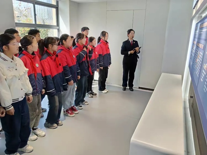 通过“知法懂法篇”的学习,学生们进一步认识到法律法规对于社会和谐发展的关键作用。讲师详细解读了未成年人保护法的相关内容,帮助同学们理解自身权益的同时,也明确了作为社会一员应尽的责任。活动现场气氛热烈,同学们踊跃提问,展现了对法律知识的渴望。为了增强学生的安全防范意识,活动特别设置了“防微杜渐篇”。这一环节通过图表、数据以及真实案例的展示,让学生深刻体会到预防犯罪的重要性。同学们围站成半圆形,专注倾听讲解员的分享,纷纷表示将把所学知识运用到日常生活中,远离不良行为,争做守法好少年。警示教育展区为学生们提供了深刻的反思机会。“警示教育篇”以多媒体形式呈现,通过视频演示和互动体验,让学生直观感受到违法行为可能带来的严重后果。这种寓教于乐的方式不仅加深了他们的记忆,还提升了自我约束力。活动尾声,“与未来对话”互动墙成为亮点之一。借助高科技教学工具,学生们亲身体验了现代法治教育的魅力。他们纷纷表示,这样的学习方式既有趣又实用,能够更好地帮助自己树立正确的价值观。
