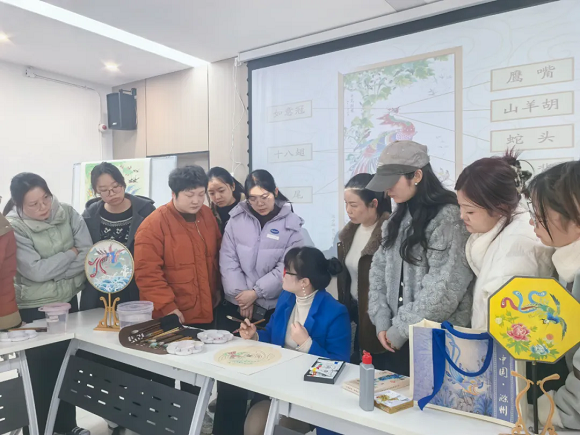 课堂中,陈海珍老师结合电子课件和画稿,亲自示范,手把手指导青年学员们进行凤画的绘制与着色。她以深入浅出的方式,详细剖析凤画的绘画技巧,操作演示生动直观,让学员们在轻松愉悦的氛围中领略到了凤画的独特魅力。