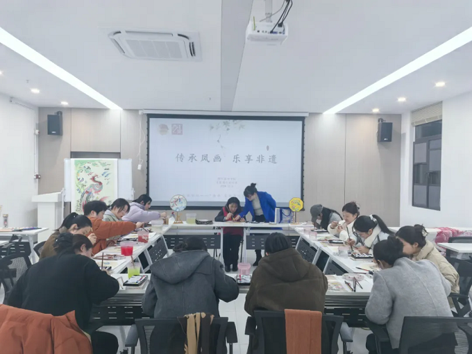 为弘扬中华优秀传统文化,传承与保护地方非物质文化遗产——凤画艺术 ,12月6日,发能国际城社区联合滁州技师学院共同开展青年加油站——“南谯·发能青年夜校”(第十期)传承凤画 乐享非遗活动,本次课程邀请到中国陶行知研究会非遗专委会理事、滁州民间文艺家协会副主席、凤阳凤画研究会副会长、凤画省级代表性传承人陈海珍老师,为学员们带来了一场精彩纷呈的知识盛宴。