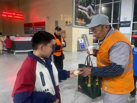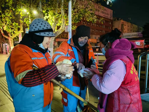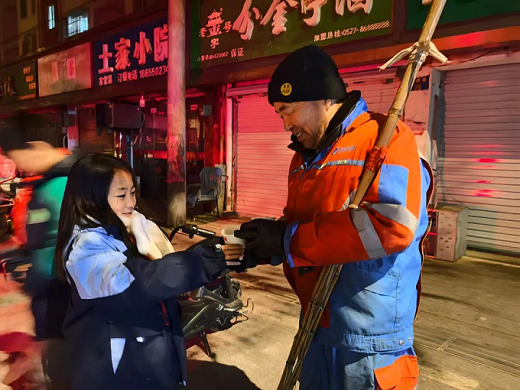 1月1日凌晨4点,参与活动的青少年及其家长带着由青少年自己煮好的姜茶早早地来到了活动场地,他们在滁州市农歌会广场和人民广场集体发声:“一杯姜茶,温暖中国,我在滁州向大家问好!”。随后,青少年志愿者们在家长的带领下分别来到了滁州中西结合医院、滁州火车北站、丰乐菜场、滁州市农歌会广场以及滁州人民广场环卫集合点,向凌晨工作者们送上一杯姜茶、一份早餐。活动中,青少年志愿者们与这群凌晨工作者进行深入交流,仔细聆听着每一份工作背后的故事,感受凌晨工作的不易。