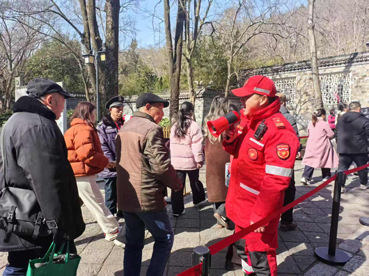 庙会现场,青年志愿者们在各景点及售票处积极进行线路引导、人员疏散、助老扶幼等志愿服务。青年志愿者们耐心细致地解答游客的咨询,热情周到地为游客提供服务,并在有可能发生危险的路段对游客进行友情提示,在人群拥堵的景区出入口进行秩序维护和人员疏散,搀扶和帮助老幼病残孕等重点群体,展现了良好的专业素养和技能。