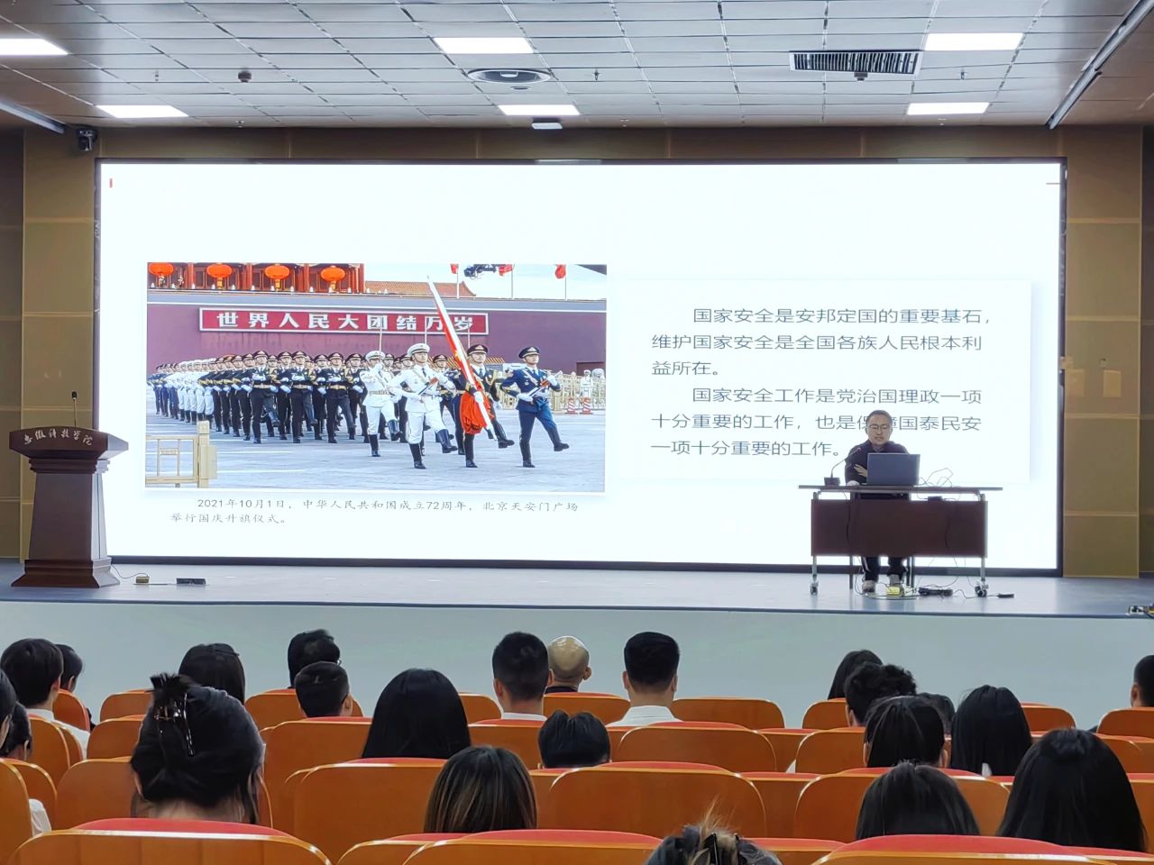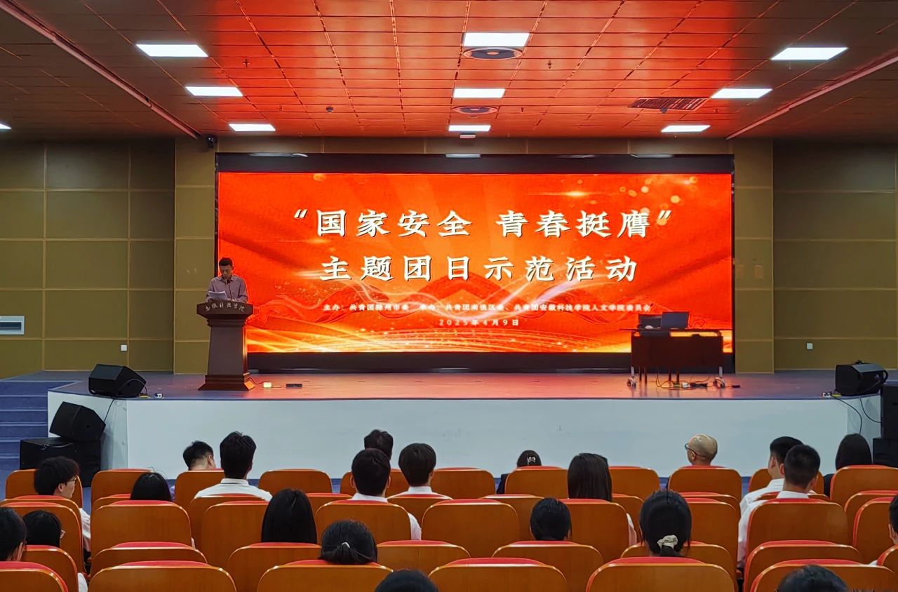 为深入学习贯彻总体国家安全观,引领广大团员青年增强国家安全意识,在第十个全民国家安全教育日来临之际,由团滁州市委主办,团南谯区委、安徽科技学院人文学院协办的“国家安全 青春挺膺”主题团日示范活动在安徽科技学院滁州校区报告厅成功举办。团市委副书记、市青联主席戴莺,安徽科技学院人文学院党委副书记、院长李晓东,南谯区人民政府副区长金硕,市国家安全局领导及130余名团员青年代表共同参与。