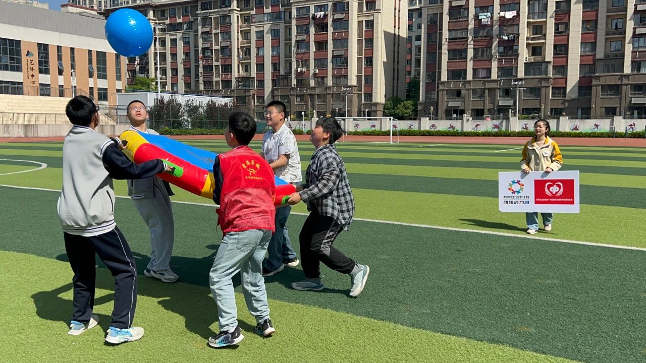 活动开始,社工以《中国机器人的摇篮》专题公开课拉开序幕。通过生动影像与互动问答,青少年们深入了解我国机器人科技从无到有、从追赶到领跑的奋斗历程,引导青少年感悟“科技报国”的责任担当,在幼小心灵播撒创新报国的种子。理论学习后,青少年们转场至永乐小学体育场,在社工指导下开展趣味运动,利用爱心包道具设置“不倒森林”“众星捧月”“手脚并用”三个环节,分组开展趣味运动,青少年们团队协作,互相鼓劲,现场气氛热烈,活动成效显著。
