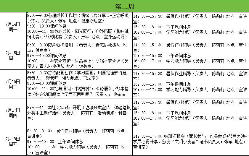 注:部分外出活动时间(如:消防救援夏令营等)以实际通知为准。