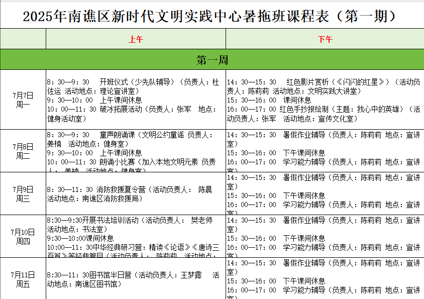 2025年南谯区新时代文明实践中心“官方带娃”公益托管班(暑假)