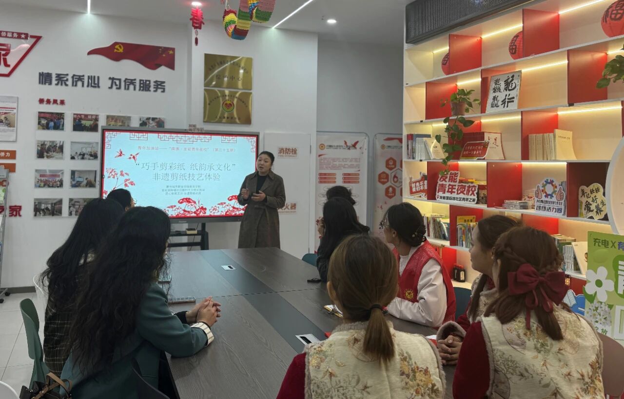 活动伊始,滁州城市职业学院方老师向青年们介绍了这门以剪刀为笔、以红纸为墨的民间艺术。她结合实例的讲解让青年们深刻理解每一幅作品背后的文化内涵与情感寄托。
