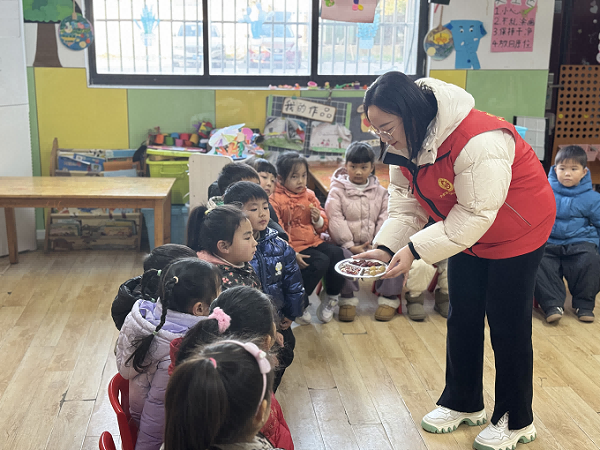 “软糯香甜腊八粥,团圆甜蜜聚福气”。活动中,青年志愿者们通过播放视频、阅读绘本等方式,让孩子们了解了腊八节的来历和习俗。随后,幼儿园小朋友们纷纷化身为小小魔法师,与青年志愿者们一起探索腊八粥的魔法配方。小朋友们说,红豆是勇敢的小骑士,红枣是机智的小精灵,糯米则是温柔的公主……每一种食材都被赋予了独特的故事和角色。小朋友们品尝着热气腾腾、香气四溢的腊八粥,感受着其中的奇妙与温馨。