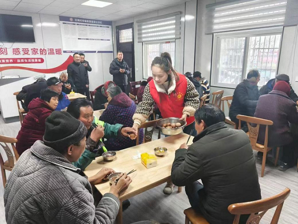在养老服务站内,青年志愿者给老人们讲了许多腊八节的传统故事,大家一边喝粥一边唠嗑,氛围幸福又祥和。活动现场粥香四溢,欢声笑语,其乐融融。“希望通过这一碗热乎的腊八粥,让温暖与老人们常相伴!”一位团员青年笑着说道。