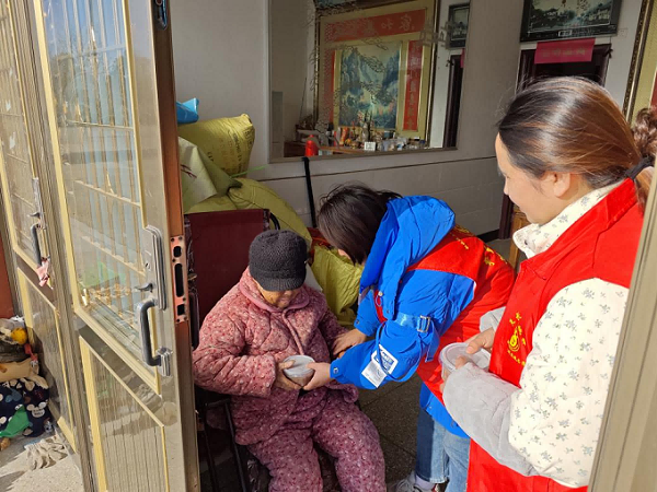 此外,青年志愿者和网格员还为行动不便的高龄老人上门送上了热腾腾的腊八粥,并亲切询问他们的身体状况和生活情况。村民们手捧热粥,笑容满面。