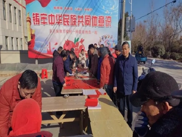 活动当天,南尖回民村广场上热闹非凡。青年志愿者们精神抖擞地迎接大家的到来。活动在一首欢快的民族歌舞中拉开序幕,大家载歌载舞,共同庆祝即将到来的新春佳节。随后,“妙笔流韵绘丹青”环节正式开始。市文联的书法爱好者们应邀来到广场,大家手执画笔,在画卷上挥洒自如,共同绘制出一幅幅寓意民族团结、和谐美好的画卷。在绘画过程中,志愿者们还与村民亲切交流,分享彼此的故事和感受。大家纷纷表示,这样的活动既有趣味性,又有教育意义,不仅在轻松愉快的氛围中感受到了新春佳节的喜庆氛围,增进了彼此之间的友谊,还深刻体会到了民族团结的重要性和意义。