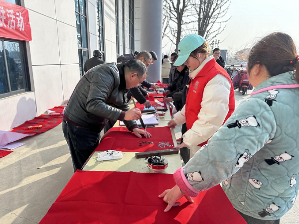 在辖区云纹广场,市书法家协会会员应邀参加活动,现场泼墨挥毫书写春联送去浓浓年味和新春祝福。青年志愿者们为周边居民递上文化“年货”的同时,发放400余份消防安全宣传、预防电信诈骗等宣传折页。“感谢你们,每年年底这么忙还特地上门送饺子,我心里真的很感动!”在独居老人王大爷家,青年志愿者们帮忙收拾院落、置办年货,切实将党委、政府的温暖送到群众心坎里。