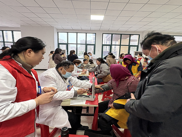 此外,天宁社区还邀请了伟业医院的医师在社区文明实践站开展义诊活动,为居民提供血压测量、血糖检测、眼科检查等基本健康检查服务。青年志愿者在现场发放卫生健康、医保政策等宣传手册,向居民普及健康知识和预防疾病的方法,帮助居民更好地了解医保政策。