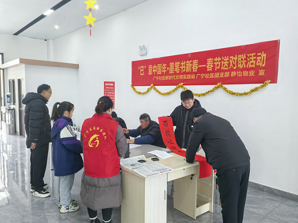 岁序更替,华章日新。为弘扬中华优秀传统文化,让辖区居民感受到浓浓的年味,近日,广陵街道广宁社区团支部举办了“‘巳’意中国年·墨笔书新春”春节送对联活动。