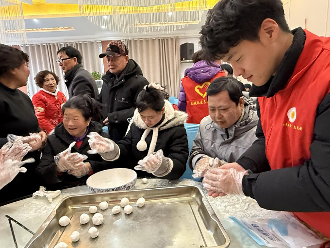 表演结束后,青年志愿者通过“元宵节知识小课堂”带大家重温了元宵节的起源与习俗,随后,老人们和青年志愿者一同进行猜灯谜、制作灯笼、包汤圆、兑换“元宵节福袋”奖品等趣味活动,老人们笑容满面,现场其乐融融。汤圆煮好后,青年志愿者为大家盛上一碗碗热腾腾的汤圆,糯香四溢中传递着团圆的美好寓意。最后,镜头定格下一张张笑脸,为活动画上圆满句号。“今天就像过年一样热闹,节目好看、汤圆香甜,心里特别暖!”参与活动的李奶奶说道。