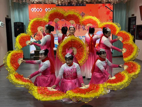 文艺演出在喜庆的开场舞《好日子》中拉开序幕。随后,扬剧《莲花女》《楼台会》选段、黄梅戏《补被达》《瑶里古韵》等传统戏曲轮番登场,《拥军秧歌》舞步欢快,《杨式太极拳42式》刚柔并济。老人们沉浸在熟悉的旋律中,时而轻声哼唱,时而拍手称赞。最后,演出以合唱《卖汤圆》温情收尾,为后续活动铺垫了热烈基调。