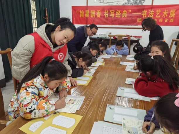 笔墨凝志描红韵,童心写意展风华。“横平竖直皆风骨,一撇一捺传精神。”“要保持一拳一尺一寸的标准坐姿。”在书画厅里,书法老师以经典诗词句为范本,讲解握笔姿势、运笔技巧,并手把手地纠正学生们书写过程中的不良习惯。青少年们屏息凝神,伏案描红,从一笔一画到间架结构,都仔细斟酌,领悟书法的精髓,感悟汉字的独特魅力。活动同步开展“最美童书”评选,由老师和家长代表从50幅作品中遴选出14幅优秀作品,并颁发“翰墨小传人”奖状及文房四宝礼盒。获奖者小张高举作品笑道:“今天老师夸我写字具有华夏风骨,以后我要坚持练下去,写好中国字,做好中国人!”