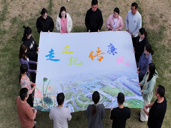 第二环节为“心向廉洁·绘制蓝图”,青年们以颜料、画布为媒介,共同创作了一幅以“廉洁”为主题的画作。通过团队协作,大家将“走正轨 传廉风”的理念融入画中,表达青年一代对廉洁从政的坚定信念和美好愿景,展现五四青年勇于创新、敢于担当的时代风貌。