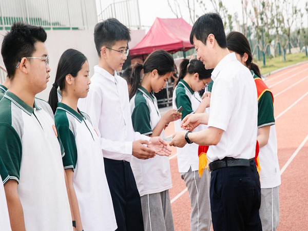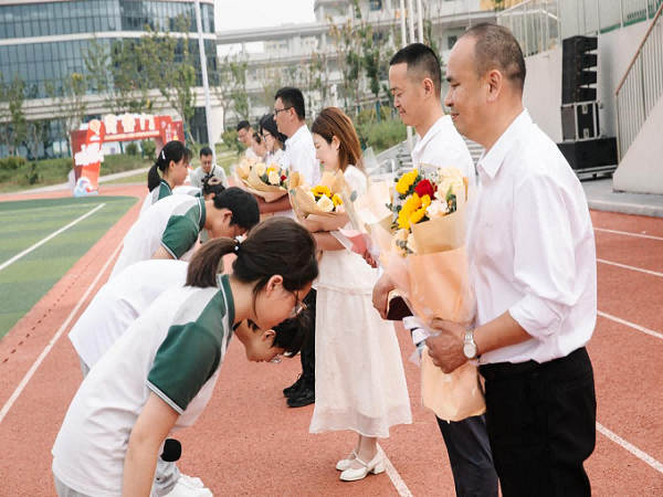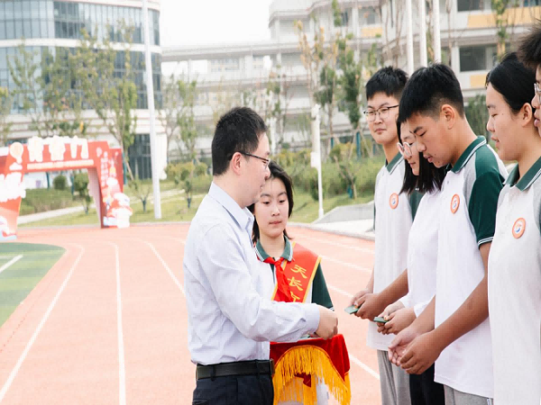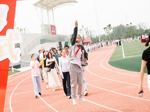 在十四岁集体生日会环节,学生对师长行感恩礼,表达对师长辛勤教导和无私奉献的感激之情。亲子温馨对话与深情拥抱,让青年学子们清晰读懂父母心中藏着的期待与骄傲。互赠信件后,全体学生与家长携手齐跨青春门,拥抱青春的担当,用更坚定的步伐,去丈量世界的广阔。