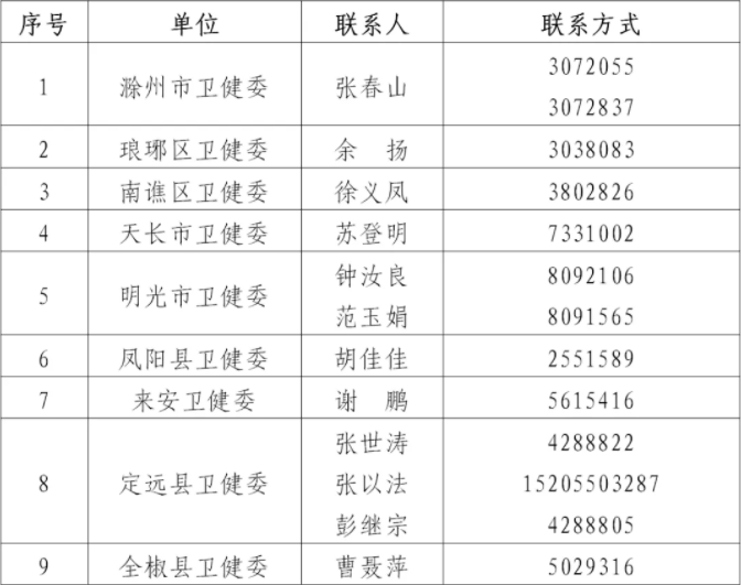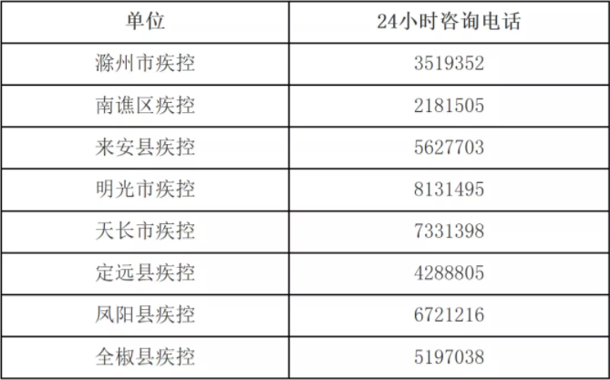 如有疑问,请拨打滁州市、县两级疾控中心24小时咨询电话(名单附后)。