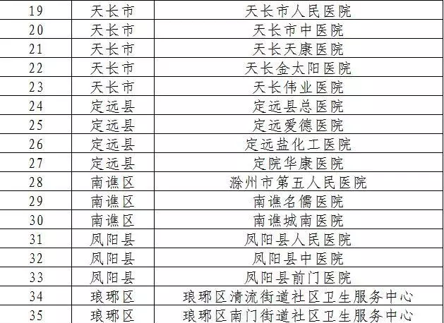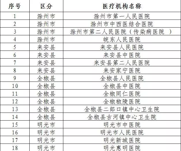 滁州市新型冠状病毒感染肺炎定点医疗机构和发热门诊名单